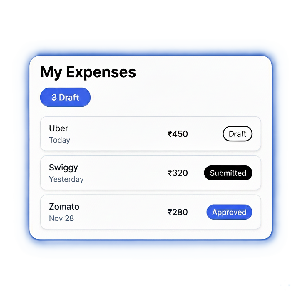 Draft expenses, upload receipts, and search by merchant or date. Keep all your expenses organized in one place.